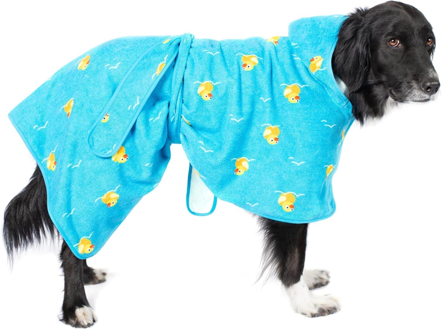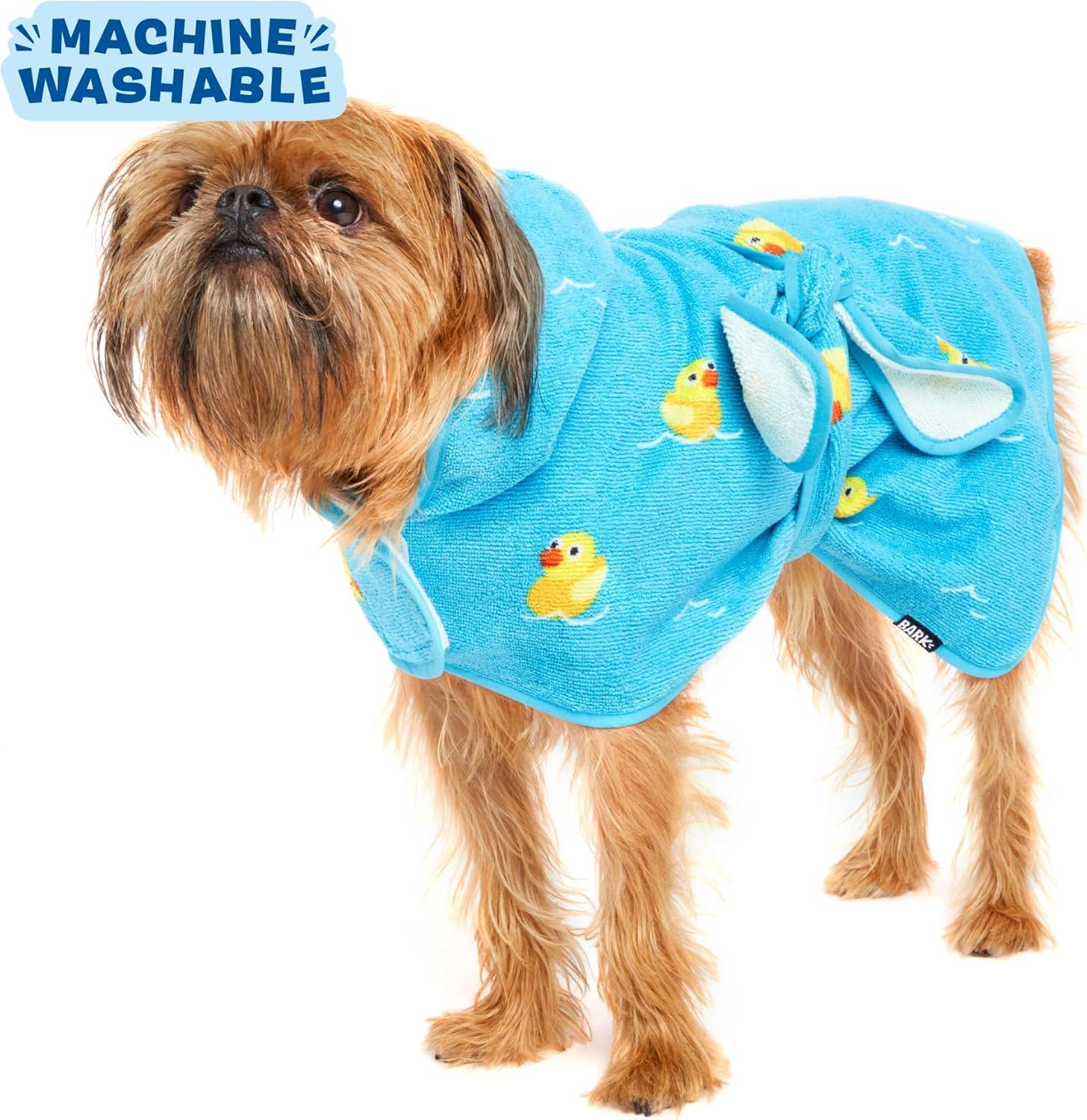 Barkbox Dog Bathrobe Fast Drying with Hook and Loop Closure & Wrap Tie Snuggle, Cute Dogs Clothes, Easy to Clean, Machine Washable, Dog Coats and Tumble Dry Low – Lion, Large(Rubber Duck)