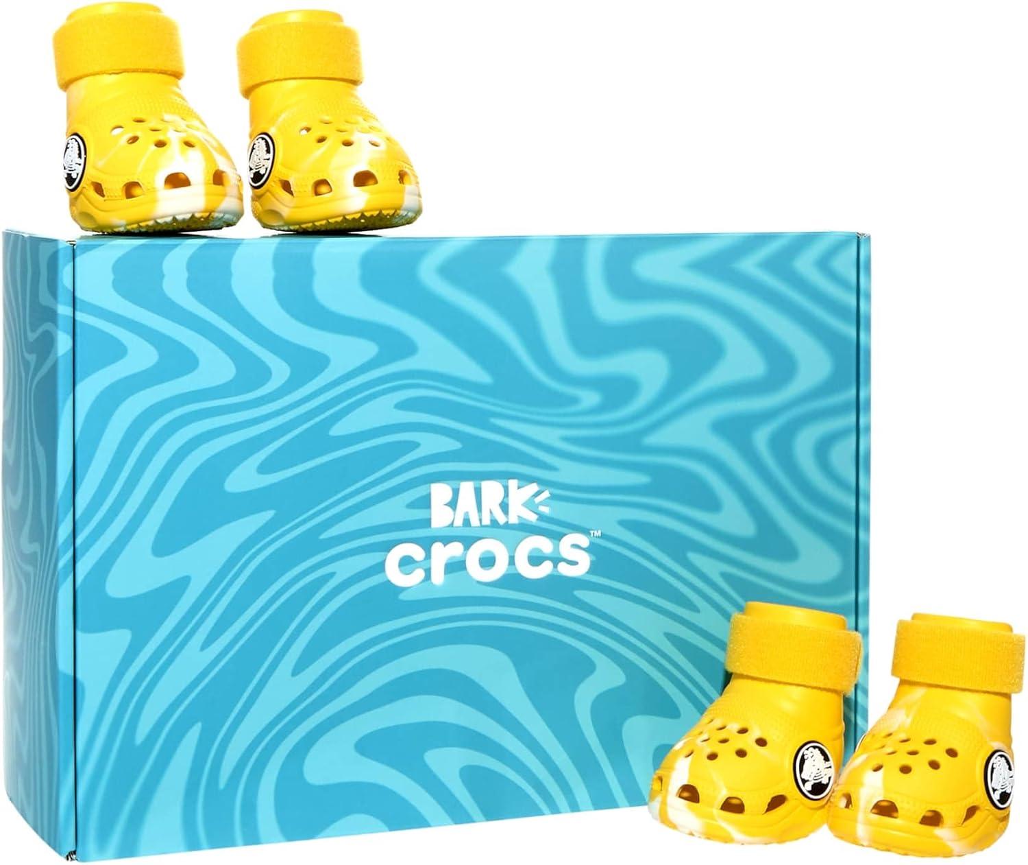 Barkbox Yellow Crocs Dog Shoes – Set of 4 Glow-in-The-Dark Dog Booties with EVA Foam, Adjustable Strap & Non-Slip Sole – Comfortable Paw Protection for Large Breeds (51-80 lbs)(Yellow)